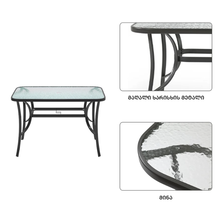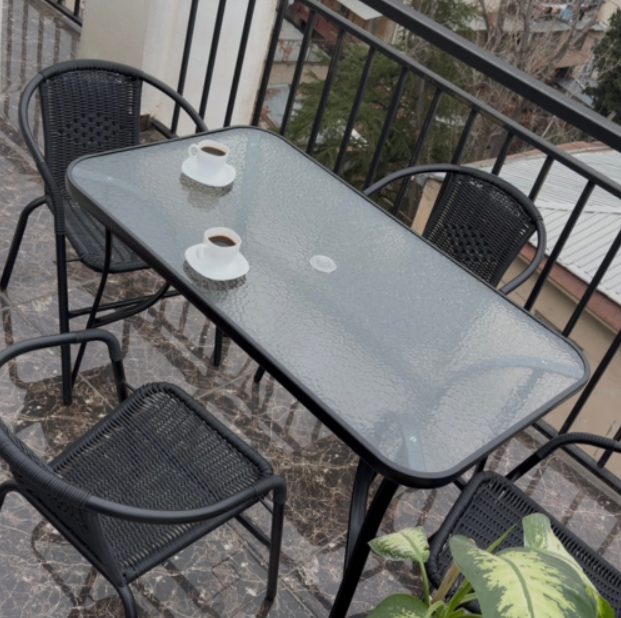 | ნაწრთობი მინის მაგიდისა და მოწნული სკამების კომპლექტი მეტალის კარკასით თქვენს ინტერიერსა თუ ექსტერიერს შესძენს მყუდროებას და გამორჩეულ დიზაინს.