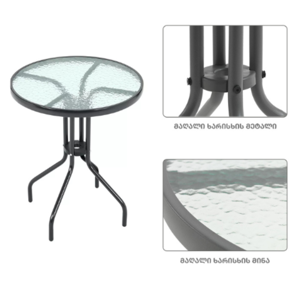 ნაკრებში შედის 1 მაგიდა ზომით : 60*70 2 ცალი სკამი ზომით: 54*61*73 გამძლეობა: 120კგ