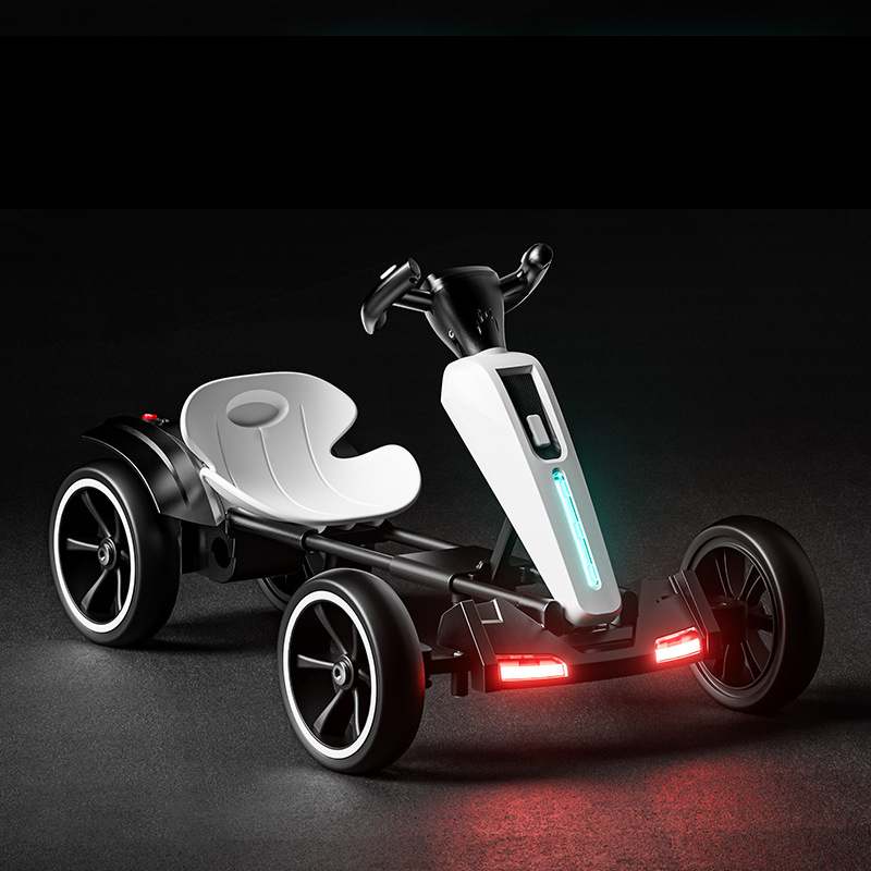 საბავშვო კარტინგი არის მუსიკალური, აქვს სიგნალის ხმაც. მოწყობილობა აღჭურვილია განათებით, კარგია საღამოს საათებში გამოსაყენებლად. მანქანა იკეცება, კომპაქტური და მარტივი სატარებელია. საბავშვო კარტინგის ღერძი რკინის გახლავთ, რაც უზრუნველყოფს მის გამძლეობასა და მაღალ ხარისხს.