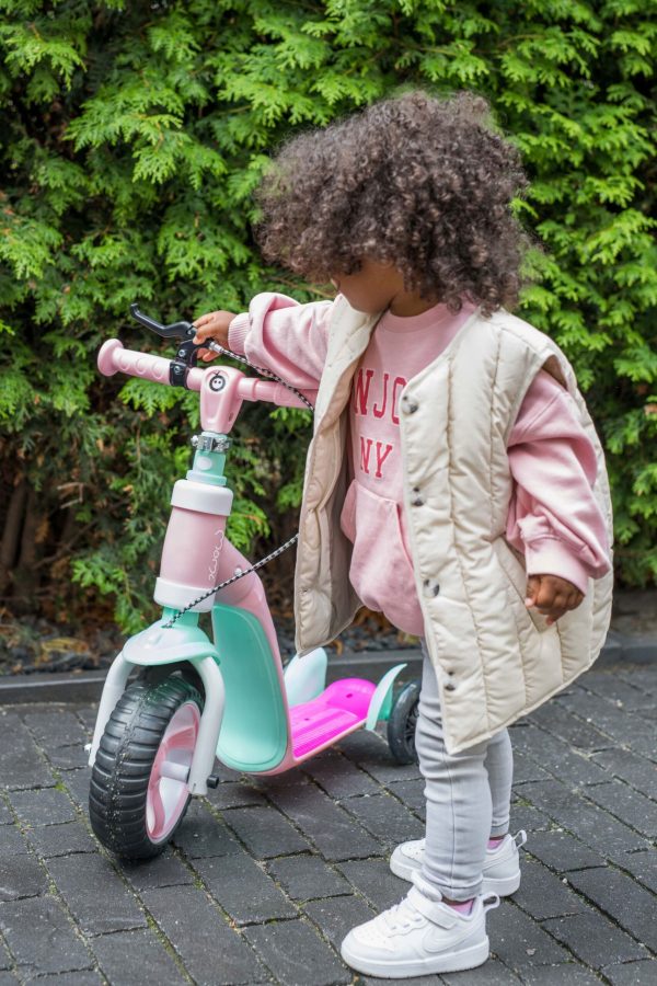 - 2 პოზიციაზე რეგულირებადი სახელურის სიმაღლე ( 53 სმ ბაიკის და 73 სმ- სკუტერის შემთხვევაში);