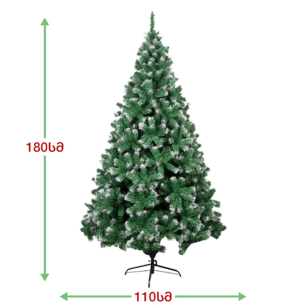 ნაძვის ხე დათოვლილი ბოლოებით,გამძლე დრეკადი მეტალის ტოტებით და ჯანმრთელობისთვის უსაფრთხო მასალისგან დამზადებული წიწვებით. მეტალის მყარი სადგამით და მთავარი ღერძით. დათოვლილი