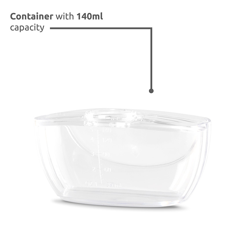 - 140 მლ ტევადობის კონტეინერი, დამზადებულია ტრიტანისგან
