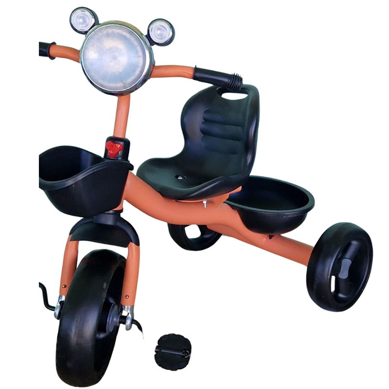 | რკინის კოსტრუქციით კაუჩუკის საბურავებით კალათა: წინ და უკან განათებით 3-6 ბავშვისთვის მაქსიმალური წონა: 35კგ |