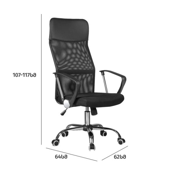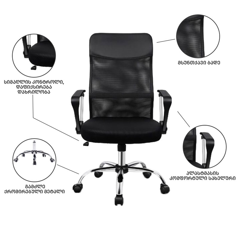 საოფისე სკამი ბადისებრი საზურგით, გორგოლაჭებზე AJ-OC03(BLACK)