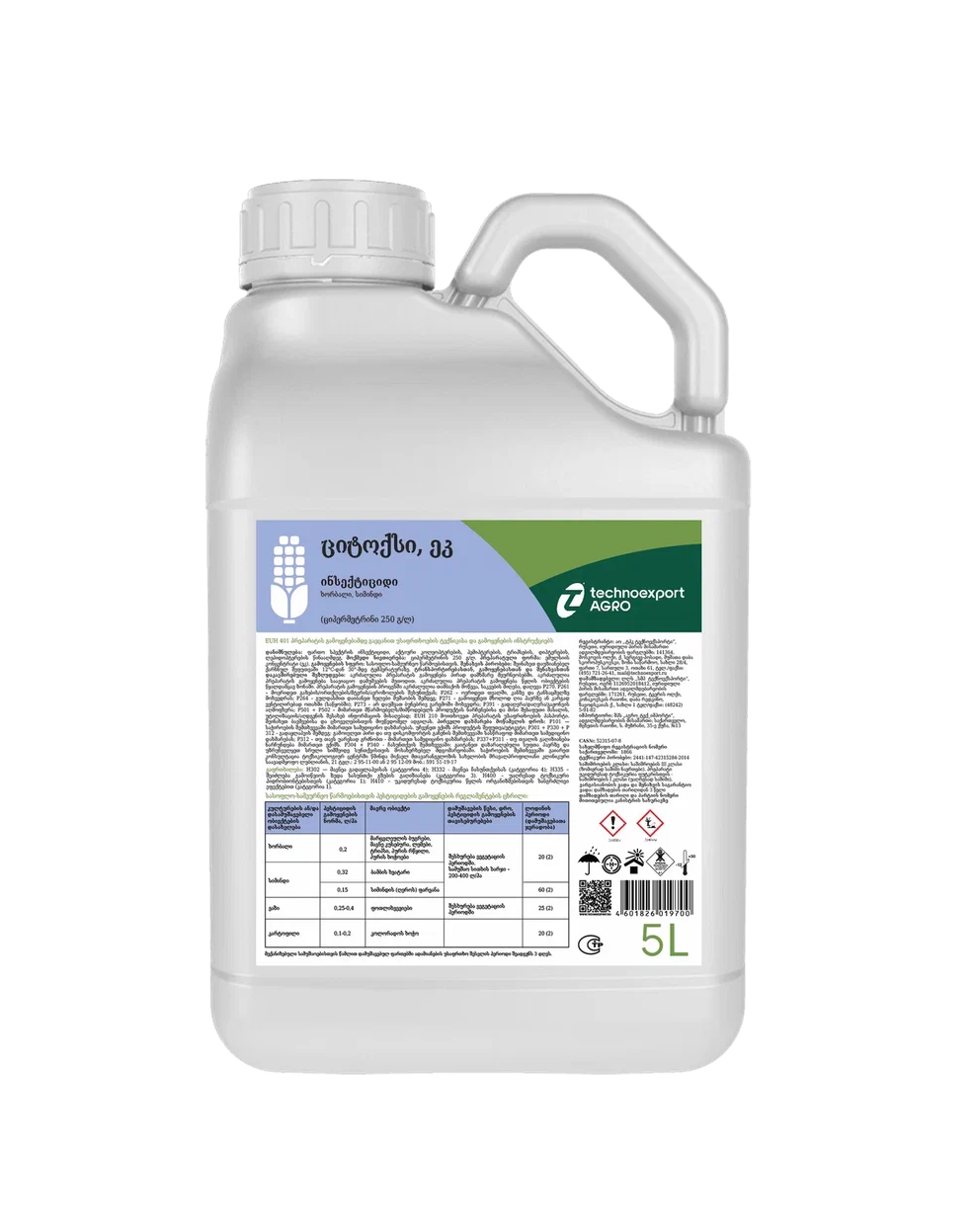 | ხორბალი | მარცვლეულის ბუგრები, მავნე კუსებურა, ლემები, ტრიპსი, პურის რწყილი, პურის ხოჭოები | 0,2 | შესხურება ვეგეტაციის პერიოდში. სამუშაო სითხის ხარჯი – 200-400 ლ/ჰა |